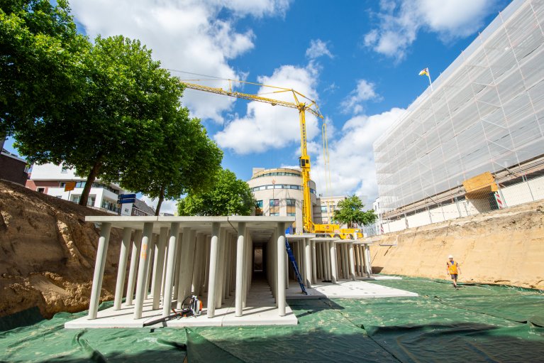 Bij het begin van de werkzaamheden is er een archeologisch onderzoek gedaan. Zo konden we de oudst bekende Heerlenaar ontdekken: Flaccus. Ook zijn er verschillende artefacten gevonden. Al deze vondsten en verhalen komen terug in het ontwerp van het Raadhuisplein. Lees hieronder meer over de geschiedenis, de archeologische vondsten en de werkzaamheden.